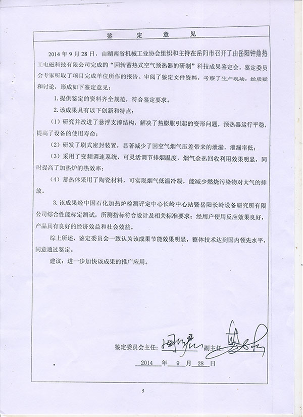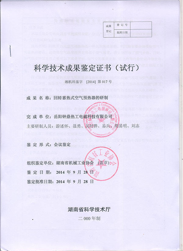 空預器成果鑒定證書