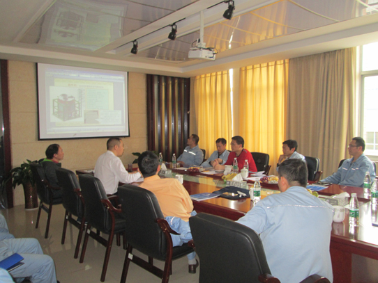參觀結束后,許總一行在三樓會議室與我公司領導進行了座談,座談會上技術開發中心羅主任為許總一行詳細介紹了我公司發明專利產品——回轉蓄熱式空氣預熱器的結構特點和運作模式,許總一行在聆聽完羅主任的介紹后,就該產品的使用環境和所帶來的社會、經濟效益與游總進行了深入的交流和探討,他希望我公司能在未來的發展中,為石油化工領域研發出更多節能環保的好產品。