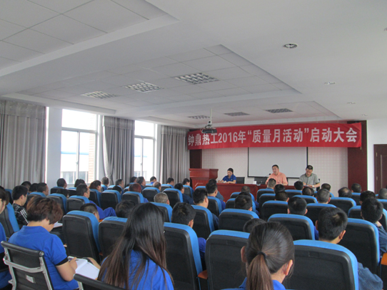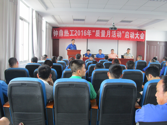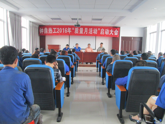 金風送爽,碩果飄香,五月的枝頭搖曳著收獲與希望。2016年5月6日下午,鐘鼎熱工2016年質量月活動啟動儀式在三樓多功能會議室舉行,總經理游述懷、常務副總屈志勇、營銷總監蔡輝出席大會并在主席臺就座,綜合部主任周萍主持啟動儀式。