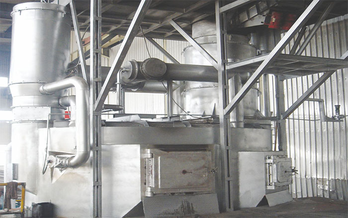 ·加料室,加料口下部,被預(yù)熱過(guò)的廢鋁料在爐子底下以浸泡方式熔化;